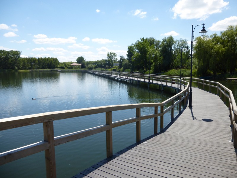 Powstały w 2020 roku nowy pomost z efektowną pływająca sceną to jedna z największych inwestycji nad jeziorem ostatnich lat. Niewątpliwie jest to też konstrukcja o standardach na miarę obecnych czasów. Scenę o wymiarach 12 na 9 m wyposażono w przenośne zadaszenie, od strony jeziora zamontowano drewniane balustrady zapewniające bezpieczeństwo. Dzięki temu, że doprowadzony jest tam prąd możliwe jest nagłośnienie organizowanych wydarzeń kulturalnych. Nowy pomost liczy łącznie ok. 111 m długości. Znalazły się tam miejsca dla ratowników, a także dla wędkarzy.